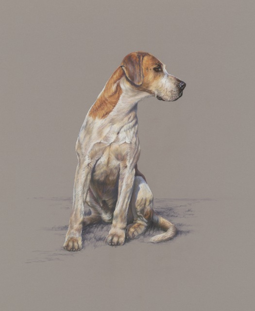 Portrait of foxhound sitting. Drawn in pastel. Print size approx 26" x 21".